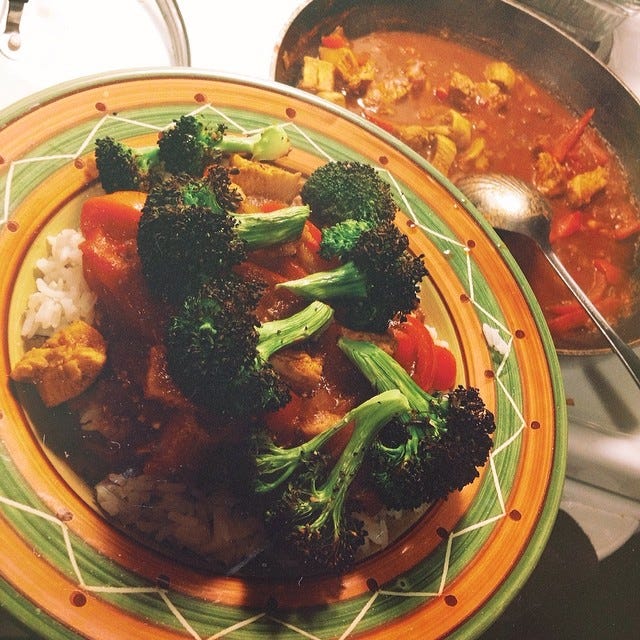 The original recipe called for cauliflower. I did not have cauliflower, and since cauliflower and broccoli basically taste the same (I said basically, don't kill me) I switched one out for the other. It worked out pretty deliciously, I'd say!